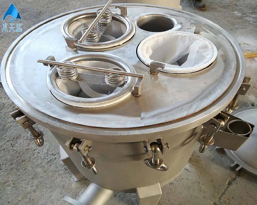 快開式袋式過濾器是一種固液分離設備,主要是用來過濾水、糖漿、酒精等液體。快開多袋式過濾器與普通袋式過濾器的區(qū)別就是,快開式頂部裝有壓力表和排氣閥。管接頭采用膨脹連接。可以使用三通外螺紋旋塞,這種開關(guān)比較平穩(wěn),能夠經(jīng)得起1.0MPa水壓。