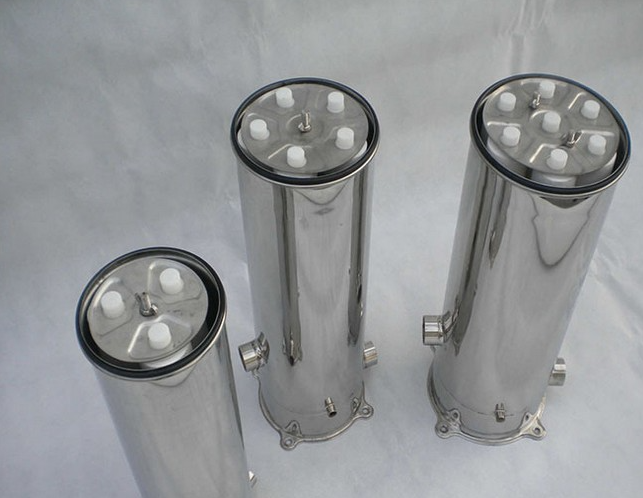 前置保安過濾器具有防止在預處理過程中不能完全去除或者產生新的懸浮物顆粒進入反滲透系統的目的,起到保護高壓泵與反滲透膜元件的作用。前置保安過濾器一般是設置在反滲透純水系統的前端,所采用的孔徑一般小于10um,可根據實際的使用情況采用孔徑更小的濾材。